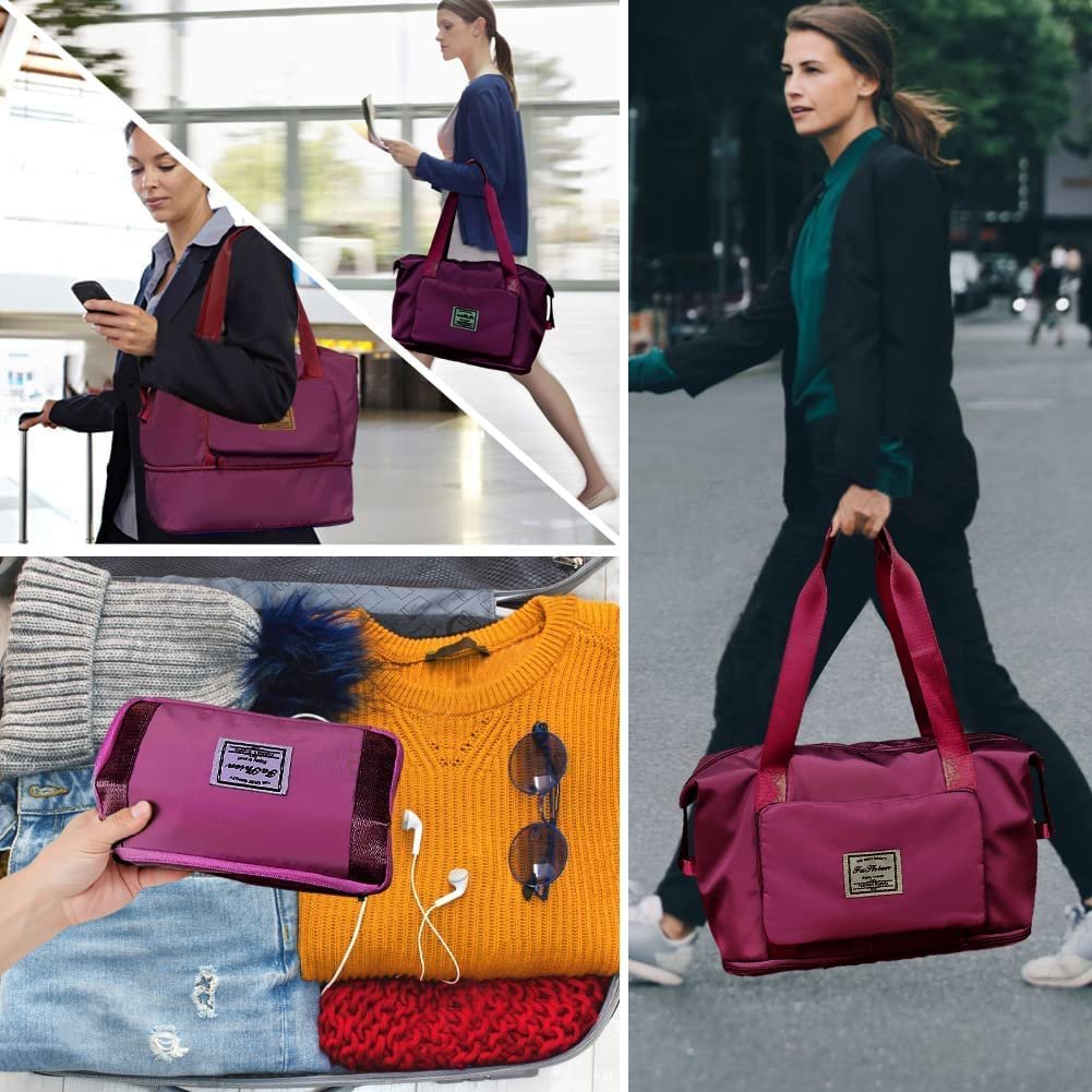 "Perfect Gift for Women – Stylish, practical, and versatile bag; ideal for birthdays, Mother’s Day, holidays, bridal showers, and maternity preparation Expandable 41L Large Capacity – Spacious design adjusts to hold clothes, shoes, toiletries, and essentials; perfect for weekend trips, gym, office, or hospital bag use Waterproof & Tear-Resistant Nylon – Premium material keeps belongings safe from rain, spills, and dust; durable construction for daily and travel use Wet & Dry Pocket Separation – Dedicated compartment for damp clothes, makeup spills, or baby items; keeps clean belongings fresh and organized Comfortable & Multi-Carry Options – Dual reinforced handles, padded removable shoulder strap, and trolley sleeve for hands-free airport travel"